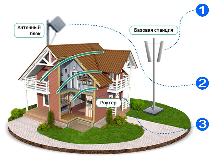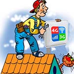 Подбирается антенный блок необходимой мощности (в зависимости от уровня сигнала). Монтируется на крышу либо фасад здания, направляется на вышку оператора получая стабильный сигнал без помех.